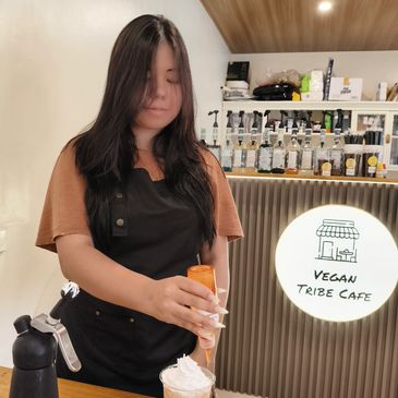 I am Irene, co-owner and head chef at Vegan Tribe Cafe, my husband, Timo, is founder and co-owner. He is the manager of this cafe and also our Chief Marketing Officer.