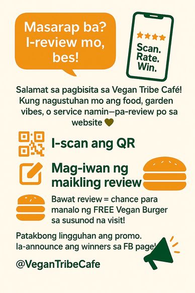 At Vegan Tribe Cafe we look forward to your review of our food and drinks. Your review may appear at Google and at this site.